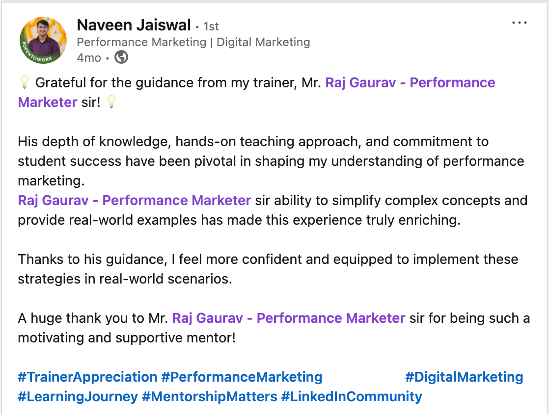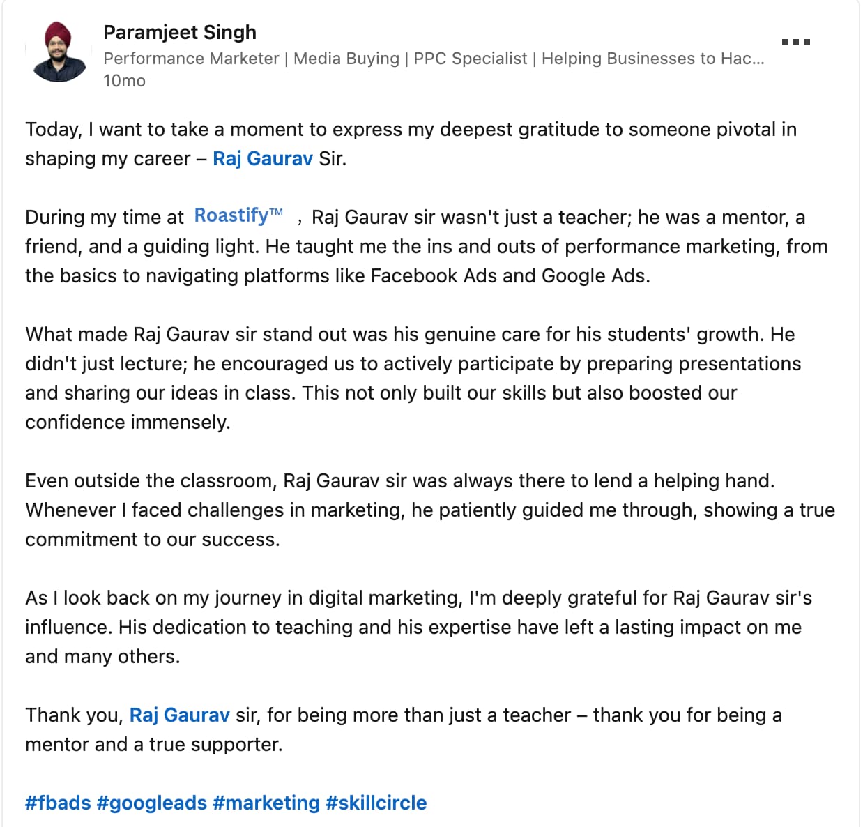 “Rajʼs practical approach and actionable strategies made all the difference. Iʼm now confident in running large-scale ad campaigns.ˮ